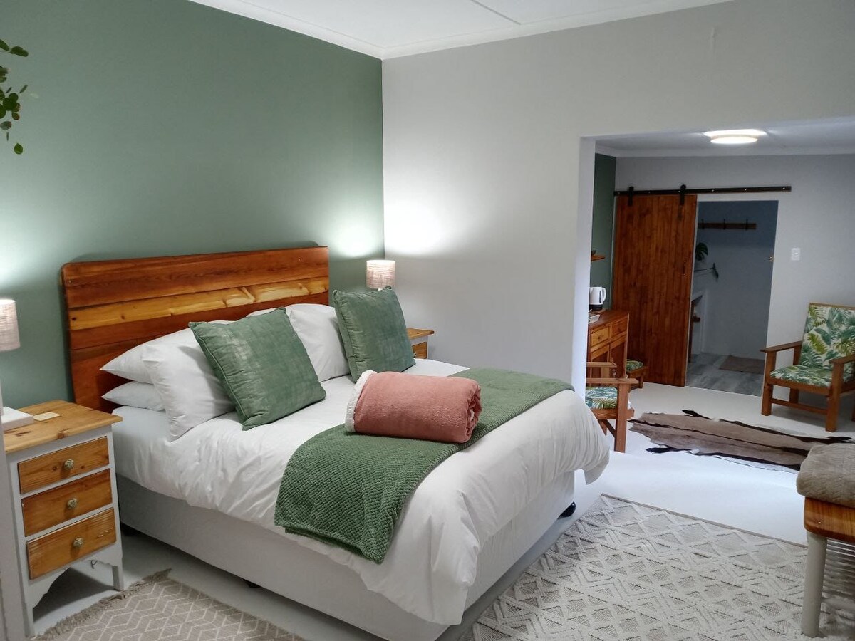 Enjoy a heart warming stay at our newly renovated family unit in Beaufort West. Expect timeless country interior that will make you feel right at home! The open plan bedroom/living area offers more than enough space for a family of four while the private outside BBQ area invites you to a night of karoo stars and making memories as a family! There's a sandpit on the premises for your little ones to enjoy while you can relax with a delicious Bootlegger coffee at our Hartsgoed store next door!