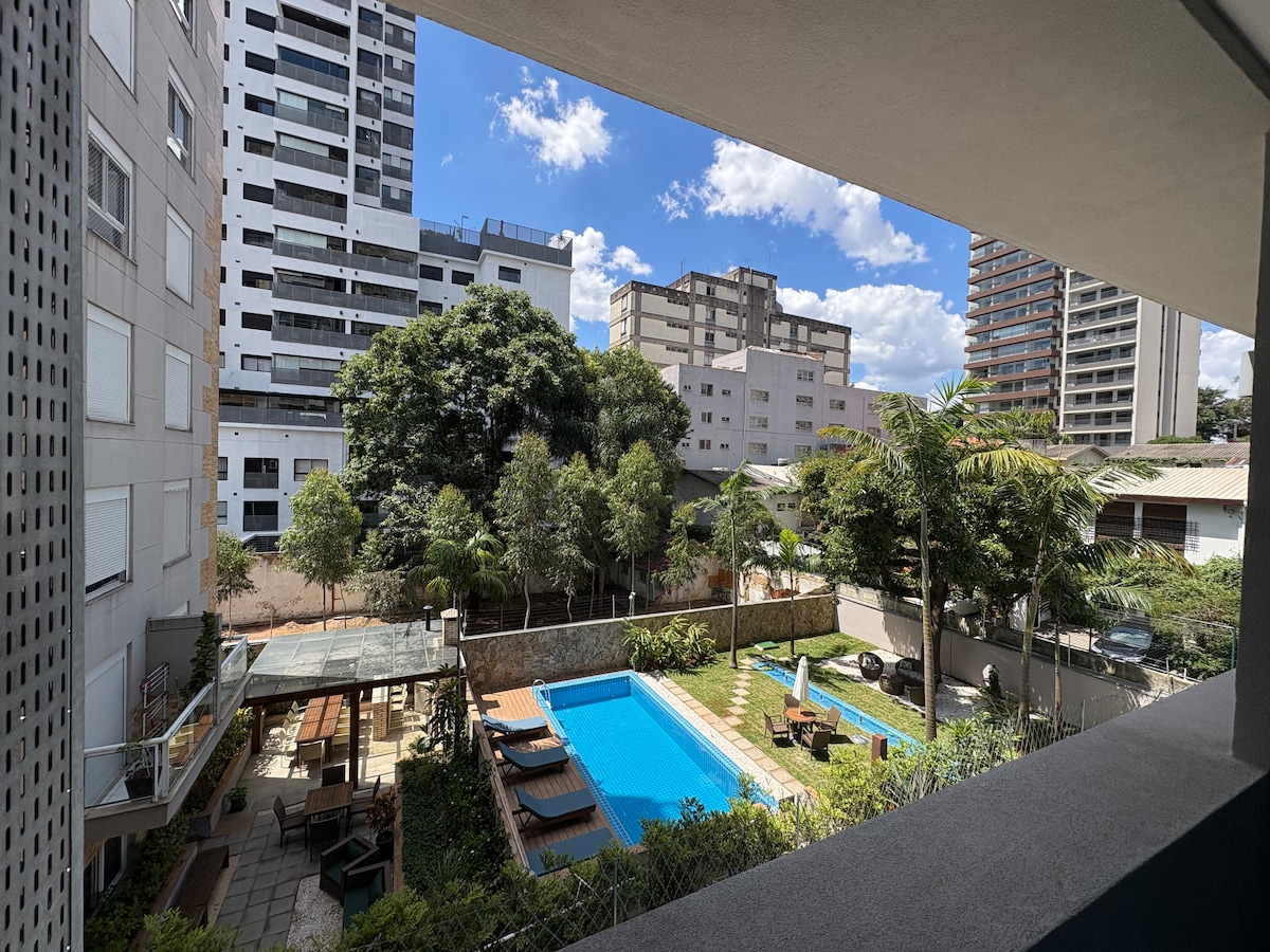 Studio impecável em ótima localização com piscina