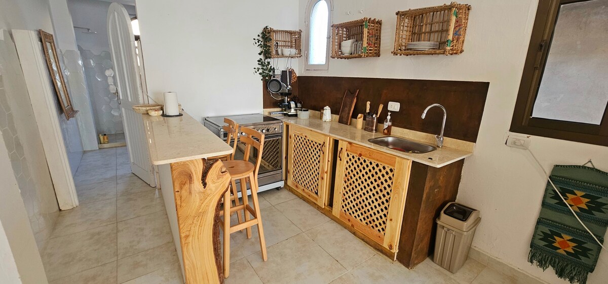 Καλώς ήρθατε στο άνετο κατάλυμά σας στο Ντάχαμπ! Στον πρώτο όροφο, το διαμέρισμα "Sea-through" προσφέρει υπέροχη θέα στη θάλασσα μέσα από κλαδιά φοίνικα και ακτίνες ήλιου, όπως δείχνει η εικόνα. Αυτό το ευρύχωρο διαμέρισμα 1 υπνοδωματίου είναι γεμάτο με χειροποίητα έπιπλα και αξεσουάρ που αντικατοπτρίζουν τον βιολογικό και φυσικό τρόπο ζωής που αγαπάμε στο Νταχάμπ. Βρίσκεται στη δεύτερη γραμμή ακριβώς δίπλα στην παραλία, σε απόσταση μόλις 3 λεπτών με τα πόδια από την αγορά Assala και 10 λεπτών με τα πόδια από τον φάρο.