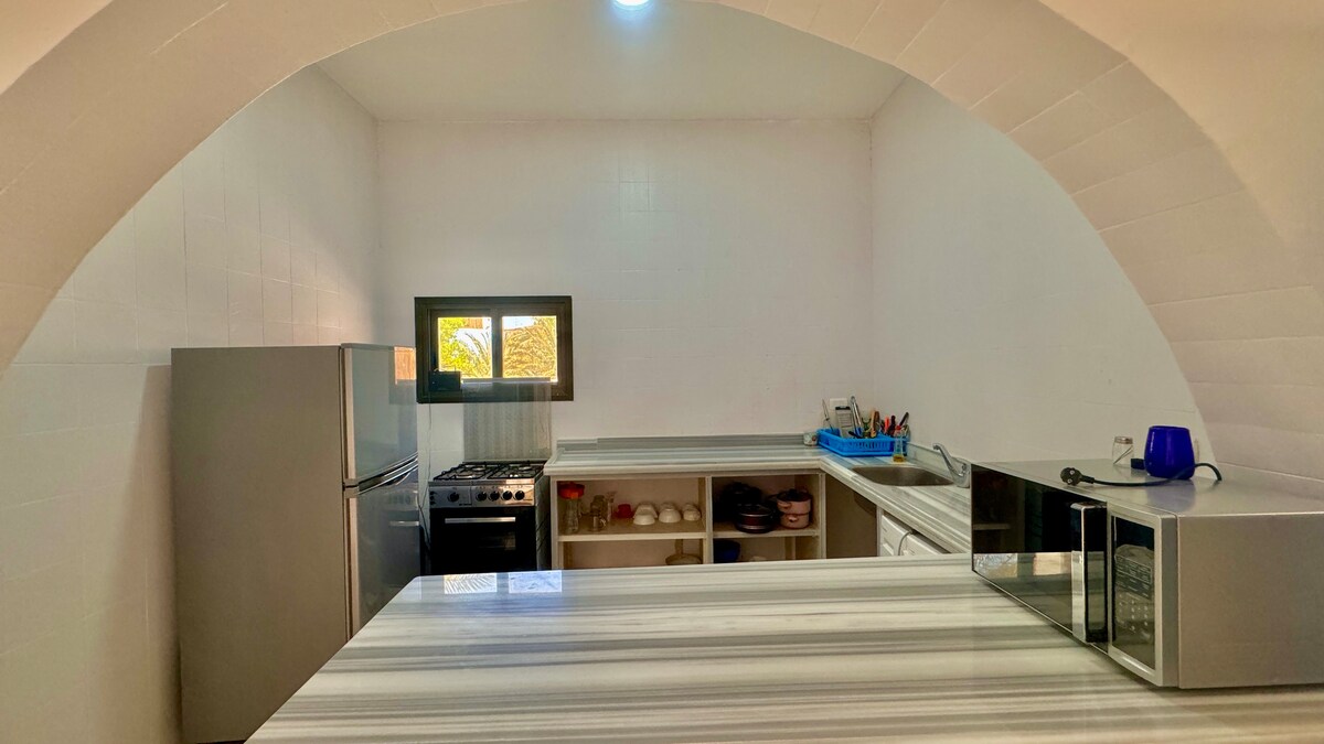 Welcome to your cozy home away from home in Dahab! Located on the first floor, the ‘Sea’-through apartment offers beautiful views of the sea through palm branches and sun rays, just as the picture shows. This spacious 1-bedroom apartment is filled with handmade furniture and accessories that reflect the organic and natural lifestyle we love in Dahab. Situated on the second line directly by the beach, it’s just a 3-minute walk to Assala market and a 10-minute walk to the Lighthouse.