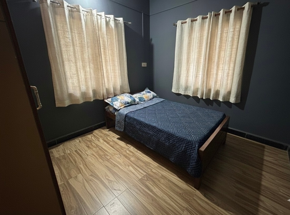 Κατάλυμα κατάλληλο για οικογένειες στο κομψό και ευρύχωρο σπίτι μας με 3 υπνοδωμάτια και 2 μπάνια. Βρίσκεται κοντά στον εθνικό αυτοκινητόδρομο, τα μέσα μαζικής μεταφοράς, τις αίθουσες γάμου, το Vidhana Sudha, τη λίμνη, τα νοσοκομεία και το αεροδρόμιο. Κοντινοί κήποι, κυβερνητικά γραφεία και δημόσιες συγκοινωνίες. Η ιδιοκτησία βρίσκεται σε μια κομψή και ασφαλή τοποθεσία. Ιδανική βάση για χαλαρωτικές διακοπές. Σχεδιασμένο με γνώμονα την άνεση και την ευκολία, μπορεί να φιλοξενήσει άνετα 6-8 επισκέπτες, ιδανικό για οικογένειες ή μικρές ομάδες. Το σπίτι καθαρίζεται και απολυμαίνεται πριν και μετά τη διαμονή κάθε επισκέπτη.