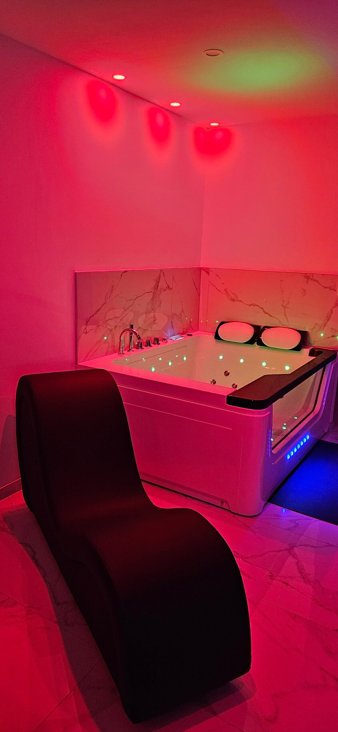 Χαρίστε στον εαυτό σας μια ευκαιρία ευεξίας σε αυτή την πολυτελή σοφίτα που έχει σχεδιαστεί για ζευγάρια. Μπανιέρα με υδρομασάζ, σάουνα, αισθητηριακή ντουζιέρα, πολυθρόνα ταντρικής... Όλα είναι έτοιμα για μια αξέχαστη εμπειρία. Εξαιρετικά γαλλικά κλινοσκεπάσματα, ιδιωτική βεράντα, ασφαλής χώρος στάθμευσης, ρομαντικές και γκουρμέ επιλογές. Εξατομικευμένη υποδοχή, μικρές προσοχές για παρατεταμένες διαμονές. Ένα καταφύγιο χαλάρωσης, ιδανικό για μία ή περισσότερες νύχτες.