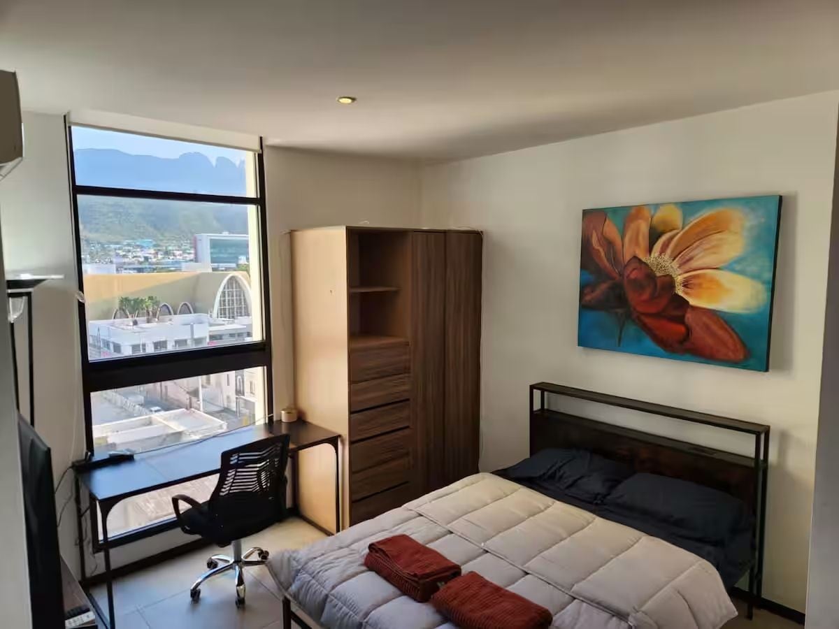 Πρακτικό και άνετο διαμέρισμα κοντά στο Cintermex, Arena Monterrey και στο Auditorium Citibanamex. Ιδανικό για να παρακολουθήσετε εκδηλώσεις όπως Pal'Norte, Machaca Fest και Live Out. Βρίσκεται σε απόσταση λίγων βημάτων από το στάδιο Arena Monterrey, με εύκολη πρόσβαση από το αεροδρόμιο, τους αυτοκινητόδρομους, τα λεωφορεία και το μετρό. Έχει χωρητικότητα 4 ατόμων και είναι επιπλωμένο για να σας προσφέρει μια ευχάριστη διαμονή.