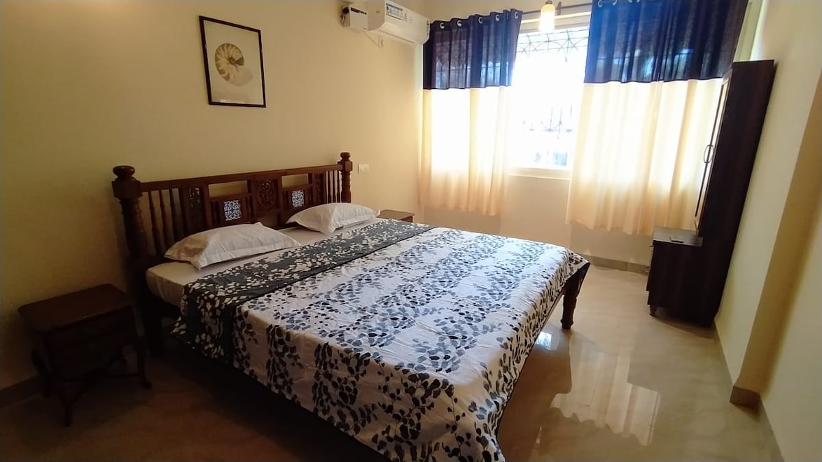 Χαλαρώστε και νιώστε γαλήνη μέσα σας! Μια τέλεια οικογενειακή απόδραση. Ελάτε να μείνετε μαζί μας για να νιώσετε ακόμα καλύτερα από ό,τι στο σπίτι σας. Απολαύστε αδιάλειπτη σύνδεση Wi-Fi με πλήρη εφεδρική τροφοδοσία. Ελάτε ως επισκέπτες και φύγετε ως οικογένεια. Φιλοξενούμε την ψυχική σας ηρεμία στο άνετο διαμέρισμα με κλιματισμό!Ετοιμάστε ένα γρήγορο σνακ ή πηγαίνετε στις καλύβες της παραλίας. Πηδήξτε στην πισίνα ή κάντε μια βουτιά στη θάλασσα. 🌊 Πηγαίνετε για τρέξιμο στην παραλία ή στο πλήρως εξοπλισμένο γυμναστήριο! Εξερευνήστε τη μοναδικότητα της Νότιας Γκόα και απολαύστε μια ήρεμη διαμονή. 😎