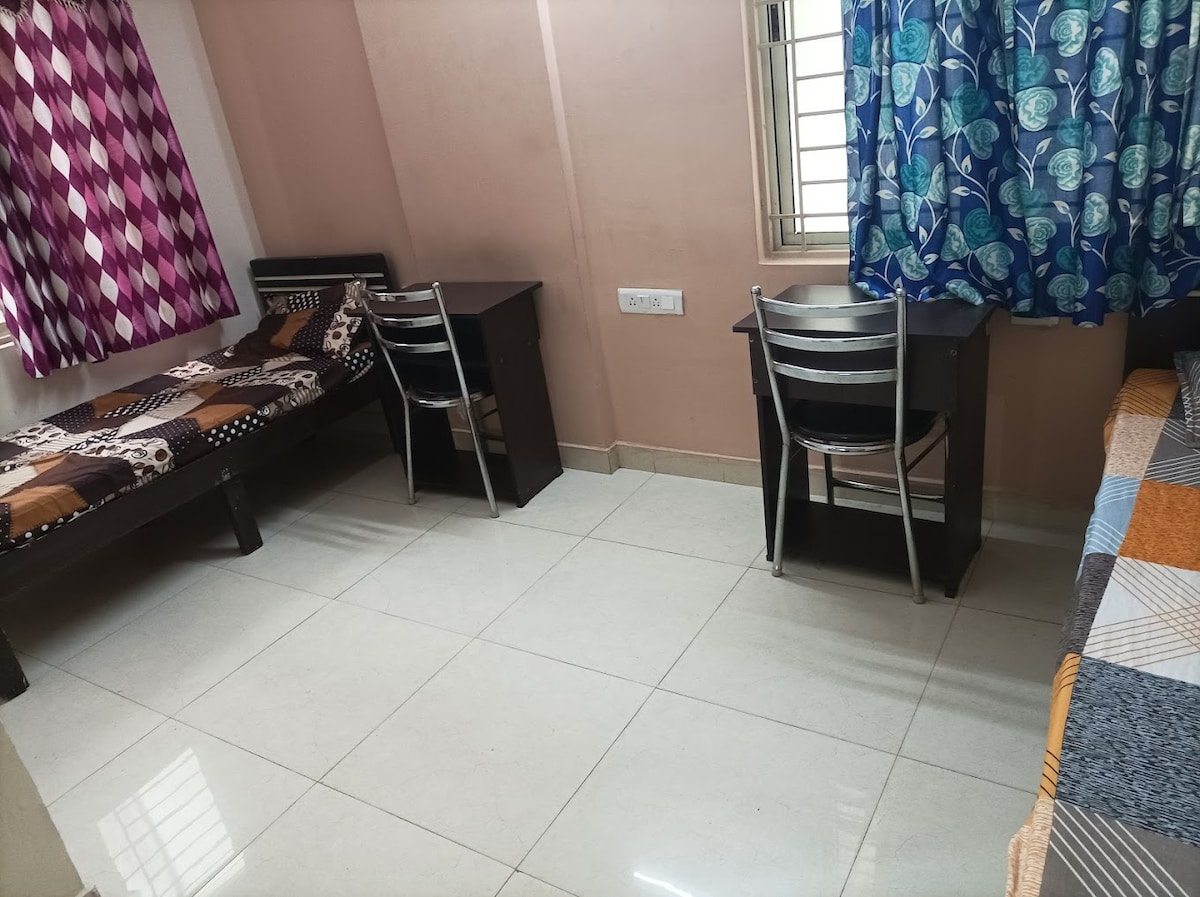Room with basic amenities. Would recommend for short and long stays. A common terrace for members to unwind. A common refrigerator and kettle is provided. Very close to the Udupi Garden bus stop. Located in the vibrancy of BTM Layout 2nd Stage. the hostel is ideal for students, backpackers and travellers making a pit stop in Bangalore before heading out again or coming in to explore the city. The hostel is a spectrum of colour, with the walls, furniture, decor all spellings out lots of it!