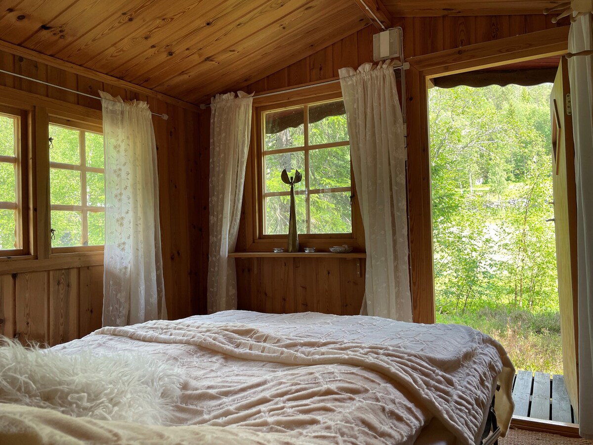 Traditional and cozy cabin in peaceful surroundings, perfect for the whole family! The cabin is set in scenic hiking terrain, ideal for walking, cycling, and skiing, with swimming and fishing lakes just below. Drive all the way to the cabin for easy access. It offers modern facilities such as sauna, bathroom with shower, toilet and washing machine. The kitchen is fully equipped with dishwasher, fridge, gas hob, and gas oven. All beds have duvets and pillows. Bed linen can be rented. Welcome!