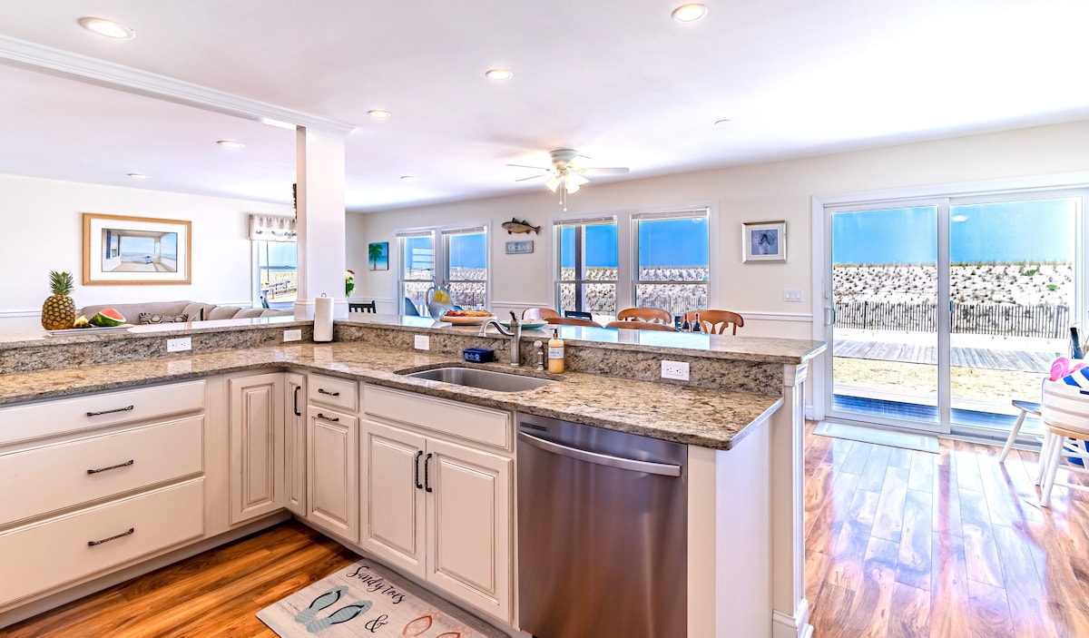 ΜΠΡΟΣΤΆ ΣΤΗΝ ΠΑΡΑΛΊΑ! ΔΊΠΛΑ ΣΤΟΝ ΩΚΕΑΝΌ! Φιλοξενεί 10 ενήλικες. 4 υπνοδωμάτια, 3 πλήρη μπάνια. Κατάλληλο για παιδιά. Το εξωτερικό αίθριο διαθέτει διπλή ξαπλώστρα καμπάνας, 2 ξαπλώστρες, τζακούζι 6 ατόμων, υπαίθρια τραπεζαρία με καθίσματα για 8 άτομα και ψησταριά Weber 4 εστιών που συνδέεται με το φυσικό αέριο του σπιτιού. Η παραλία είναι ακριβώς μετά το κατάστρωμα και είναι ιδανική για οικογένειες με παιδιά που αγαπούν την άμμο. 55" streaming ΤΗΛΕΟΡΆΣΕΙΣ σε κάθε υπνοδωμάτιο και τηλεόραση 65" στο σαλόνι. Γρήγορο ίντερνετ FIOS, πλήρως εξοπλισμένη κουζίνα, απλά φέρτε φίλους και οικογένειες.