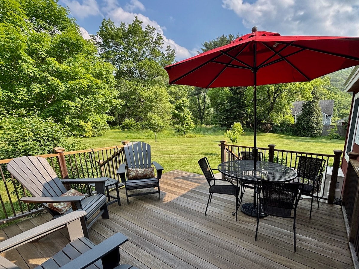 Χαλαρώστε με όλη την οικογένεια σε αυτήν την ήσυχη απόδραση στο Μπέρκσαϊρ με εύκολη πρόσβαση σε όλα όσα έχει να προσφέρει η περιοχή. Μια γρήγορη διαδρομή 20 λεπτών με το αυτοκίνητο στους λόφους σκι Butternut ή Catamount, καθώς και στο κέντρο του Great Barrington. Το Tanglewood και το Jacob 's Pillow απέχουν μισή ώρα με το αυτοκίνητο. Ή μείνετε στο σπίτι και απολαύστε την ειρήνη και την ησυχία των γύρω δασών, ανάψτε μια φωτιά στη σόμπα, μαγειρέψτε στη μεγάλη πλήρως εξοπλισμένη κουζίνα ή πηγαίνετε πίσω για μπάρμπεκιου στη μεγάλη βεράντα και παίξτε μπάντμιντον στην αυλή.