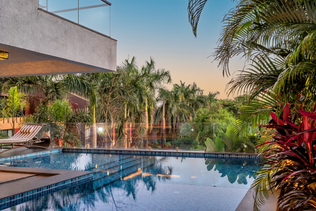 Η γοητεία της πισίνας αυτής της βίλας στη σειρά ανυψώνει τη συνολική κομψότητά της, προσφέροντας στους κατοίκους έναν μοναδικό και κομψό χώρο για να χαλαρώσουν, να αναζωογονηθούν και να αναπληρώσουν τις δυνάμεις τους. Μεγάλα παράθυρα πλαισιώνουν την πισίνα, παρέχοντας απρόσκοπτη θέα στον γαλήνιο εξωτερικό χώρο. Το σπίτι βρίσκεται πολύ κοντά στην παραλία Benaulim, είναι ιδανικό για οικογένειες, ζευγάρια και φίλους. Η κουζίνα είναι πλήρως εξοπλισμένη για να ετοιμάζουν οι επισκέπτες ελαφριά γεύματα ή για τα πιο παθιασμένα γκουρμέ γεύματα του μάγειρα.