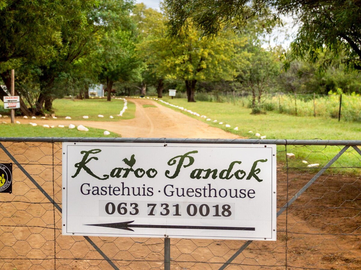 Το όμορφο διακοσμημένο πολυτελές αγροτόσπιτο είναι μια ανοιχτή μονάδα με δυνατότητα προετοιμασίας γευμάτων και τζάκι, πλήρως εξοπλισμένη κουζίνα, διπλό κρεβάτι, μπάνιο με ντους. Ένα μεγάλο σκαλοπάτι με εκπληκτική θέα, ιδιωτικό κήπο και πρόσβαση στην πισίνα στον κύριο ξενώνα, Karoo Pandok. Είναι επίσης φιλικό προς τα κατοικίδια, πλήρως περιφραγμένο, αλλά χρεώνουμε επιπλέον 75,00 R ανά κατοικίδιο, το οποίο καταβάλλεται κατά την άφιξη. Συζητήστε με τον οικοδεσπότη σας.