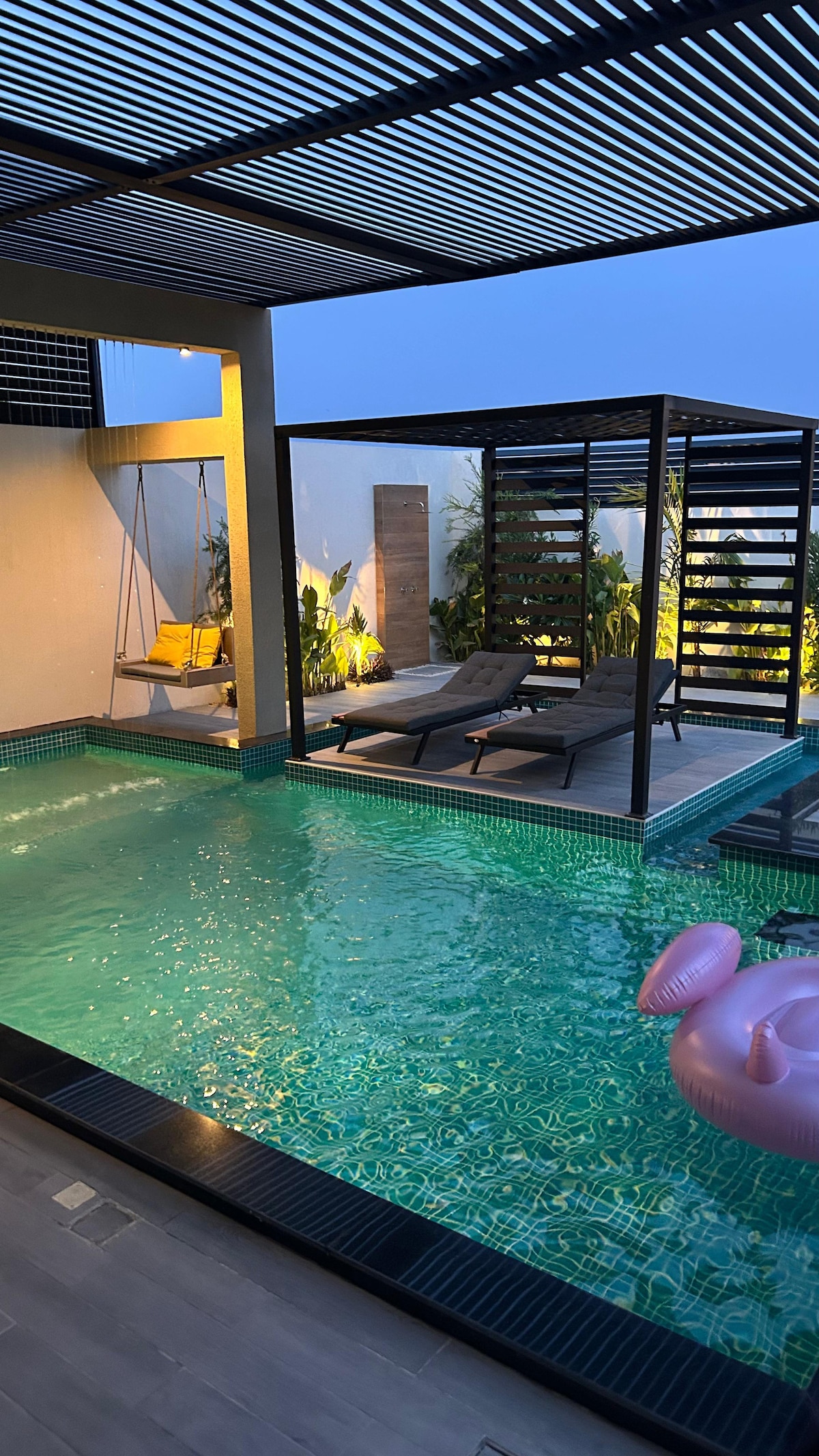 Areena Chalet is a private 5-star luxury retreat designed exclusively for couples seeking privacy, comfort, and unforgettable moments. Enjoy a serene atmosphere with a private swimming pool, outdoor seating areas, BBQ space, romantic photo spots, and an elegant bedroom with a relaxing bathtub. Perfect for anniversaries, honeymoons, or a peaceful escape, Areena Chalet offers complete privacy in a beautifully maintained setting where comfort and memories come together😍