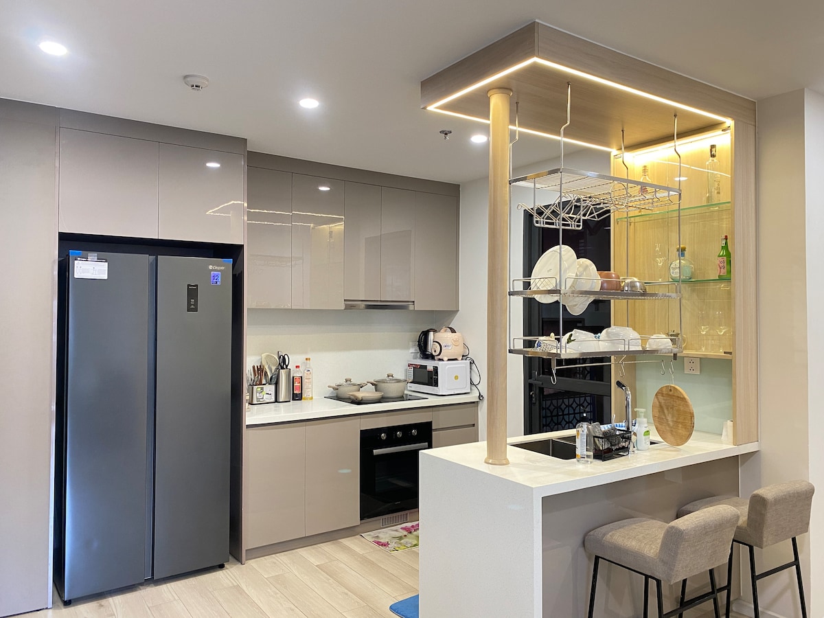 Αυτό το🌟 πολυτελές διαμέρισμα 80 τ.μ. βρίσκεται στην Περιφέρεια 1, με θέα στο ποτάμι και ολόκληρη την πόλη, σε μια εξαιρετική τοποθεσία κοντά στο Bui Vien, την αγορά Ben Thanh και τον πεζόδρομο Nguyen Hue σε ακτίνα 2 χιλιομέτρων. Το διαμέρισμα διαθέτει 2 υπνοδωμάτια (3 κρεβάτια, συμπεριλαμβάνοντας υπόψη 2 κρεβάτια king size 1m8x2m και 1 κρεβάτι queen size 1m4x2m), 2 μπάνια και πλήρεις εγκαταστάσεις, όπως πισίνα υπερχείλισης αλμυρού νερού, γυμναστήριο, στεγνή και υγρή σάουνα. Απολαύστε την άνετη αίσθηση του να είστε στο σπίτι σας σε αυτό το μοντέρνο κτίριο.
