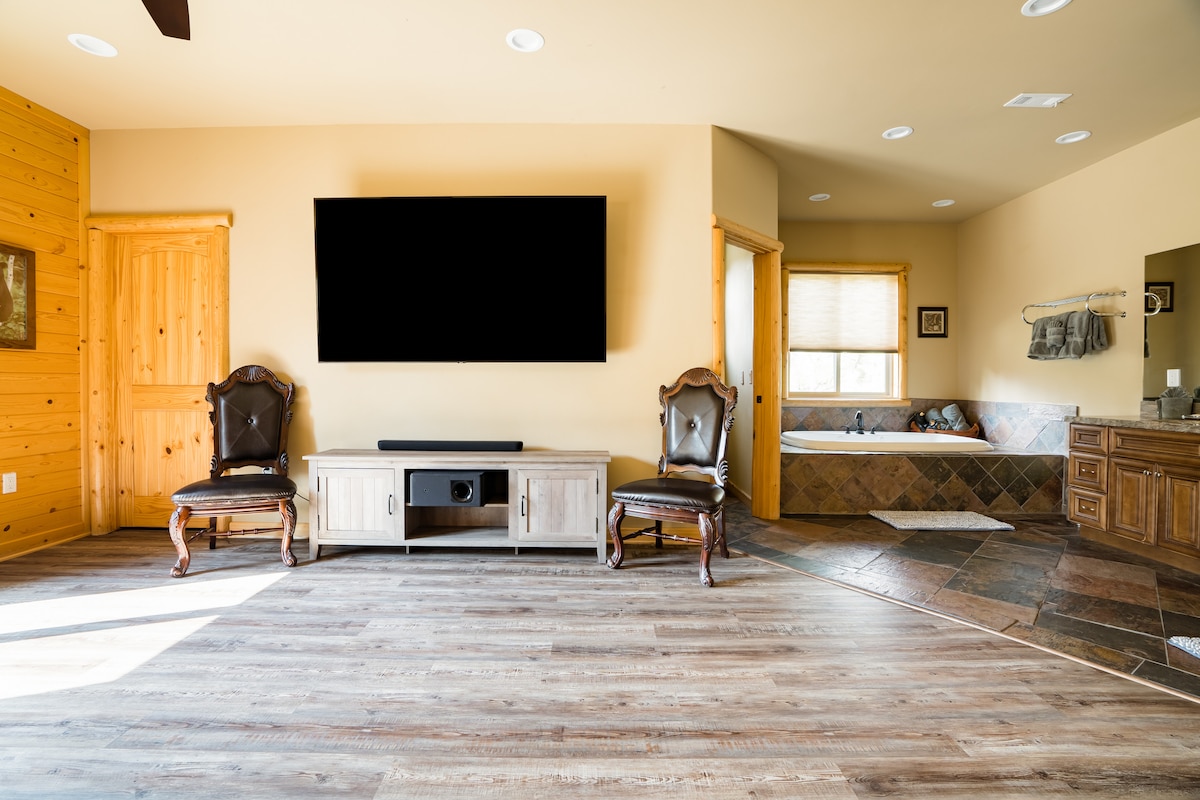 Δεν έχει παραβλεφθεί καμία λεπτομέρεια στο πολυτελές ορεινό καταφύγιό μας σε 1/2 στρέμμα στο Μουνρίτζ. Φιλοξενεί 8 άτομα. Χαλαρώστε στο τζακούζι, απολαύστε καφέ ή κοκτέιλ στην κούνια της βεράντας, καθίστε γύρω από το τραπέζι με τη φωτιά ή την εξωτερική τραπεζαρία, κάντε μπάρμπεκιου ή τηγανίτες στην τεράστια ψησταριά μας. Χρησιμοποιήστε το Peloton ή την ιδιωτική σάουνα. Παίξτε μπιλιάρδο, ποδοσφαιράκι, πινγκ πονγκ, βελάκια ή το ηλεκτρονικό μας παιχνίδι! Χαλαρώστε στον ανακλινόμενο καναπέ μας, δείτε ταινίες ή τον αγώνα. Λίμνη, πλαγιές, καταστήματα και εστιατόρια σε κοντινή απόσταση, αλλά μπορεί να μην θέλετε να φύγετε από το σπίτι!