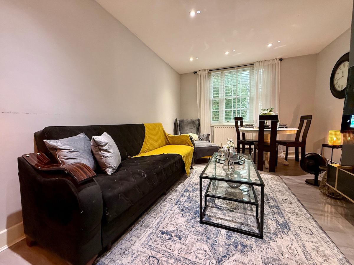 Καλώς ήρθατε στην κομψή απόδρασή σας στην πόλη! Αυτό το μοντέρνο διαμέρισμα ενός υπνοδωματίου, με δύο καναπέδες που μετατρέπονται σε κρεβάτια, είναι ιδανικό για μικρές ομάδες ή οικογένειες. Απολαύστε μια πλήρως εξοπλισμένη κουζίνα με καφετιέρα, πλυντήριο και στεγνωτήριο, όλα όσα χρειάζεστε για μια ξέγνοιαστη διαμονή. Χαλαρώστε σε έναν φωτεινό, άνετο χώρο με καθαρά κλινοσκεπάσματα, δωρεάν προϊόντα περιποίησης και ψυγείο με δροσιστικά ποτά. Ένας τέλειος συνδυασμός άνεσης και ευκολίας στην καρδιά του Λονδίνου. Ανυπομονούμε να σας φιλοξενήσουμε!