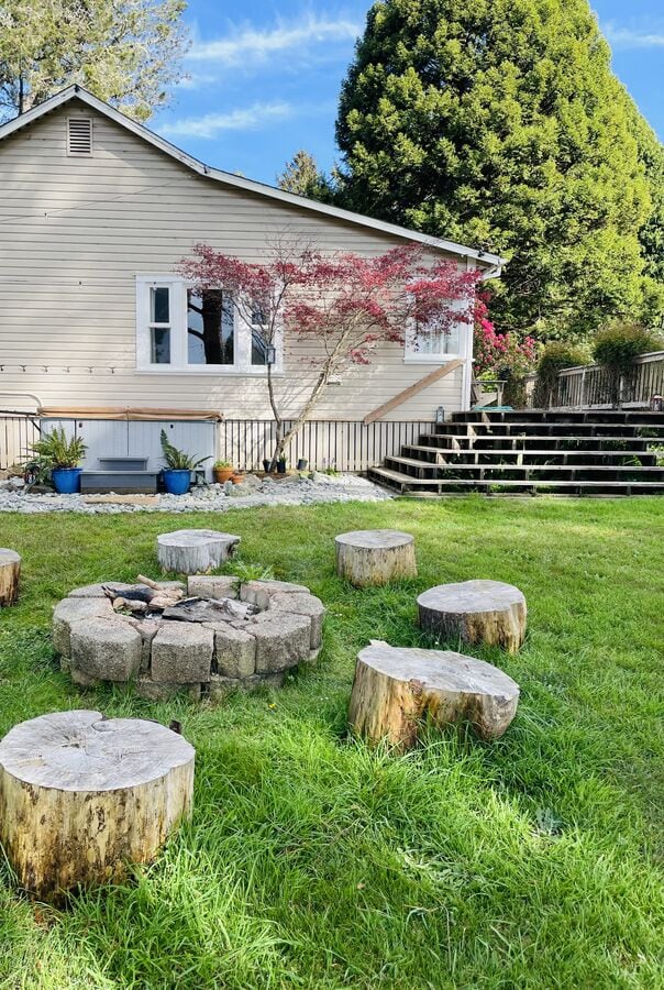 Relax on our lawn chairs and breathe fresh air as sea lions bark and waves crash on the rocks below. Whale watch from the picnic table or soak in the hot tub while taking in the amazing view. How about a glass of wine while the sunset paints the sky in vibrant colors? We also have lawn games to play while you enjoy your own private retreat and breathtaking views! Follow us on IG @driftwood_retreat