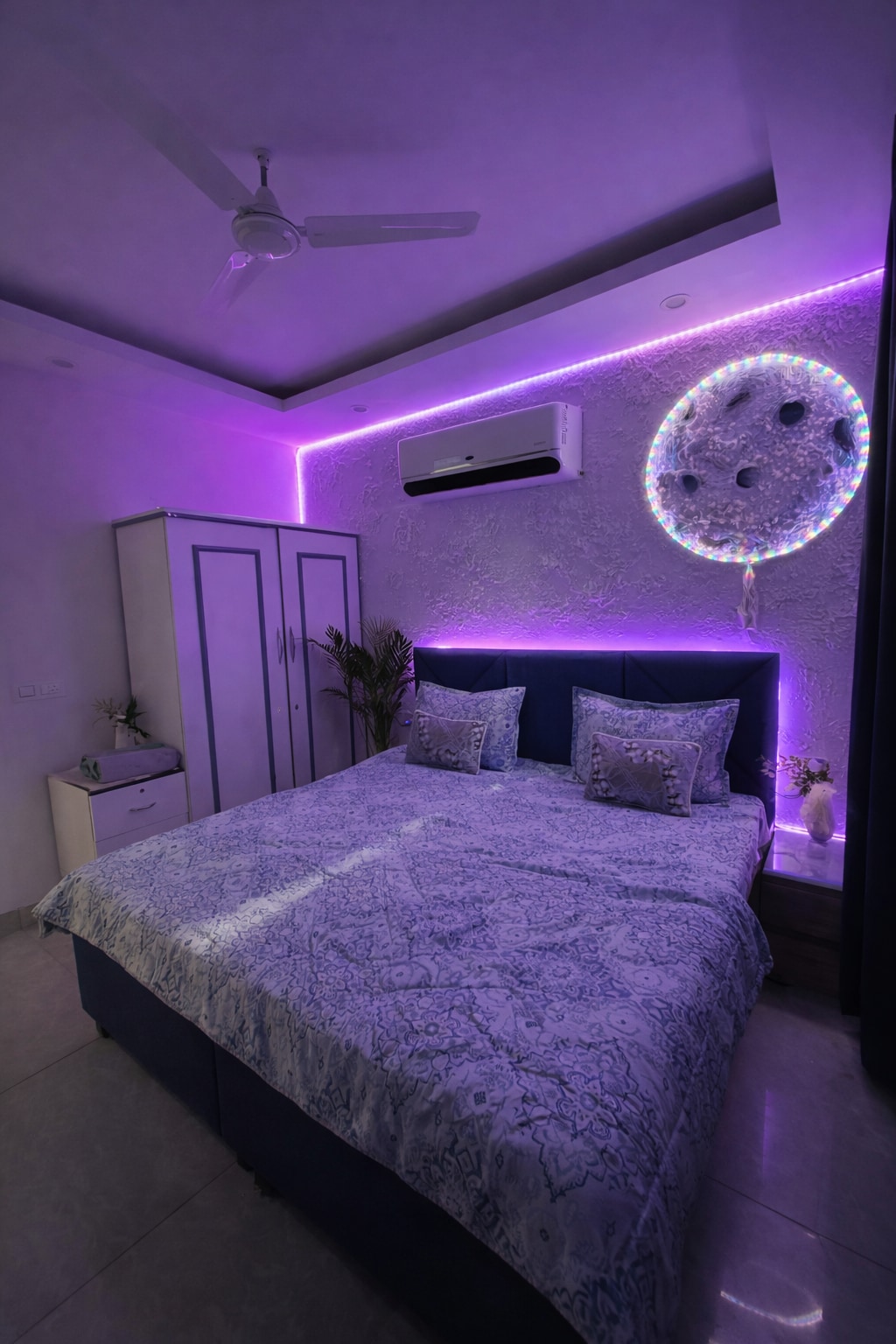 Καλώς ήρθατε στη σουίτα Luxury Moonlit, ένα προσεκτικά σχεδιασμένο υπνοδωμάτιο που προσφέρει μια ήρεμη, κομψή και άνετη διαμονή. Ο απαλός φωτισμός LED εμπνευσμένος από το φεγγάρι, τα κλινοσκεπάσματα υψηλής ποιότητας και ο μοντέρνος εσωτερικός χώρος δημιουργούν μια χαλαρωτική ατμόσφαιρα ιδανική για ζευγάρια, μεμονωμένους ταξιδιώτες ή μακροχρόνιες διαμονές.