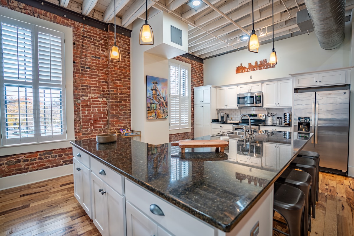 Μοντέρνα βιομηχανική σοφίτα στο Mercantile on Morris. Δωρεάν πάρκινγκ! Κεντρική τοποθεσία στο κέντρο της πόλης σε κοντινή απόσταση από την πανεπιστημιούπολη και το νοσοκομείο UAB και όλα τα υπέροχα εστιατόρια και καταστήματα μέσα στην ιστορική περιοχή! Το εκπληκτικό αίθριο στην ταράτσα προσφέρει μια απίστευτη πανοραμική θέα στα φώτα της Μαγικής Πόλης τη νύχτα και στο εμβληματικό Άγαλμα του Βούλκαν. Η ολοκαίνουργια μονάδα διαθέτει μια όμορφη μοντέρνα κουζίνα, ανοξείδωτες συσκευές, πλυντήριο/στεγνωτήριο, γρήγορο wifi και ένα πανέμορφο μπάνιο! Πολύ ωραίος τοίχος από τούβλα και σίδερο. Φιλικό προς τους σκύλους!