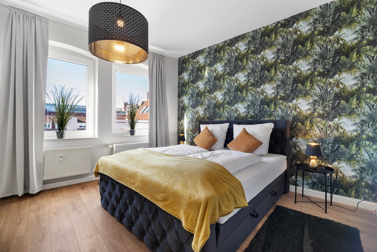 Within a 6000 sqm plot below the Veste Coburg you get a bungalow with every comfort. 3 rooms, 100 sqm, with kitchen (equipped with everything), two bathrooms, secluded terrace with large garden. Absolutely quiet and yet right in the middle of it all. 5 minutes by car and 10 minutes on foot to the center. High-quality furnishings. Floor-to-ceiling windows with a wonderful view of nature and Coburg.