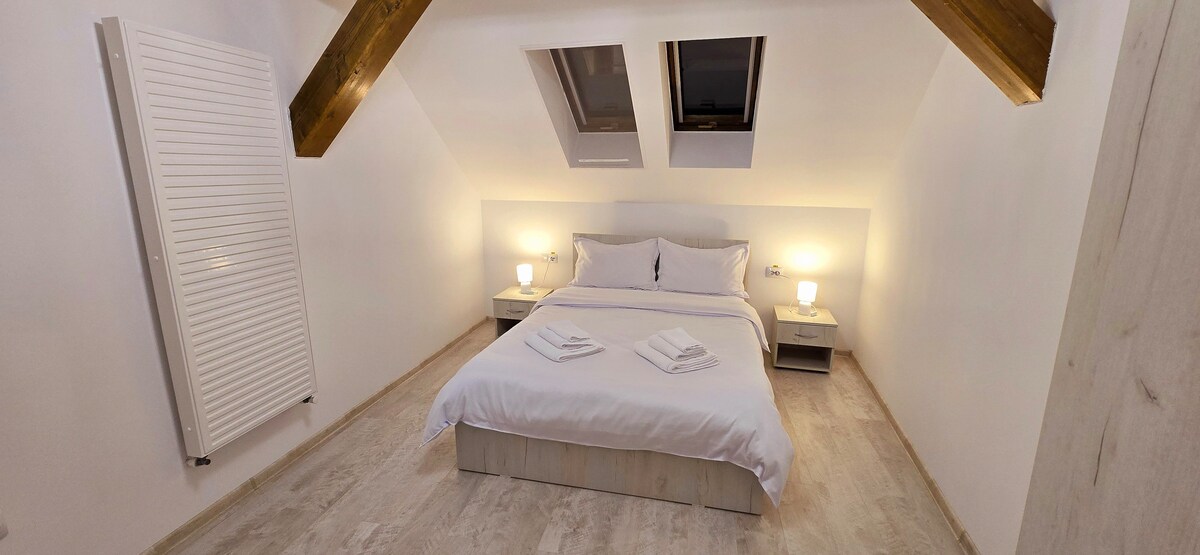 Ένα πολυτελές διαμέρισμα, κατάλληλο για τους πιο απαιτητικούς τουρίστες! Ακριβώς στο κέντρο της Μπιστρίτας, σε κοντινή απόσταση από τα περισσότερα αξιοθέατα, εστιατόρια και καφετέριες στην ιστορική περιοχή της πόλης, το διαμέρισμα ήταν πρόσφατα επιπλωμένο με φινιρίσματα και ανέσεις κορυφαίας ποιότητας. Ένα υπνοδωμάτιο με ονειρεμένο υπνοδωμάτιο, όπου μπορείτε να ξεκουραστείτε, πλήρως εξοπλισμένη κουζίνα και, μπόνους, τοποθέτηση στην καρδιά της πόλης, σε μια ήσυχη περιοχή με ασφαλή χώρο στάθμευσης.