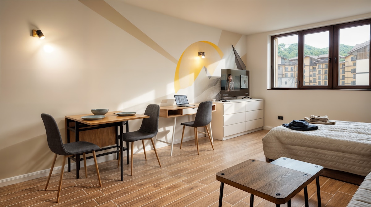 🏔 Καλώς ήρθατε στο ζεστό σας καταφύγιο στο Μπάνσκο! 🏡 Είτε είστε εδώ για σκι, πεζοπορία ή απλά για να αναπνεύσετε τον αέρα του βουνού, αυτό το φωτεινό και φιλόξενο στούντιο προσφέρει μια άνετη βάση για τη διαμονή σας. Απέχει μόλις 10 λεπτά με τα πόδια από το τελεφερίκ και το κέντρο της πόλης, σε ιδανική τοποθεσία για να απολαύσετε τη φύση και την τοπική κουλτούρα.