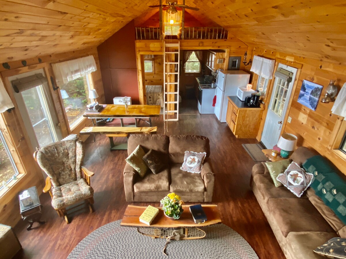 Χαλαρώστε με όλη την οικογένεια σε αυτόν τον ήσυχο χώρο διαμονής. Εξωτερικό-Μεγάλη είσοδος με πολύ χώρο για στάθμευση ρυμουλκούμενου ATV/μοτοσικλέτας χιονιού, ξυλόσπιτο που περιβάλλεται από δάσος από όλες τις πλευρές για να απολαύσετε τη φύση και μια βεράντα με σήτα για να βλέπετε όλα τα ζώα που περνούν! Εσωτερικό - Ανοιχτή κουζίνα, σαλόνι και τραπεζαρία που είναι γευστικά διακοσμημένα για να νιώθετε σαν στο σπίτι σας. Ο κάτω όροφος περιλαμβάνει επίσης 2 υπνοδωμάτια και ένα μπάνιο. Με θέα την ανοιχτή περιοχή υπάρχει μια παιδική σοφίτα με δύο κρεβάτια.
