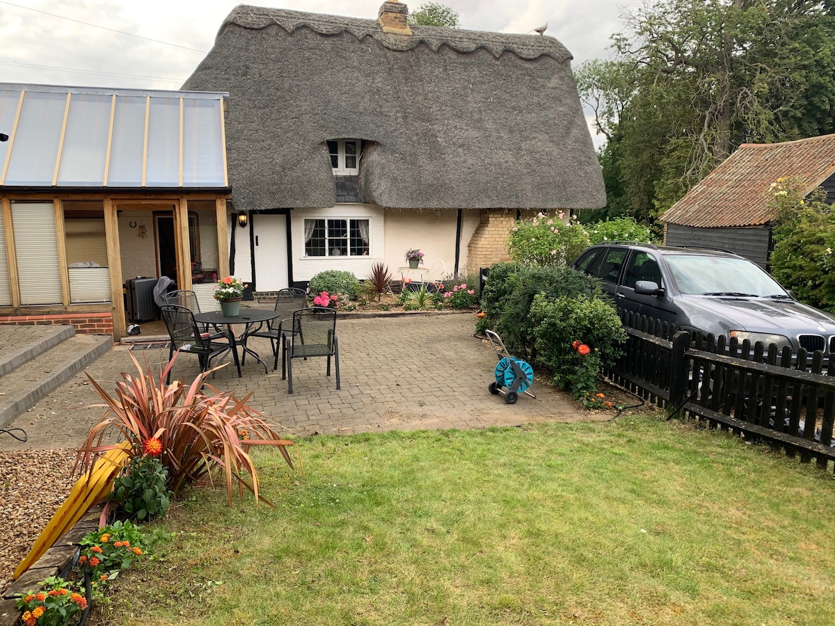 Five star reviews... peaceful self contained home nestled in the oldest part of Renhold, Bedford. Next to our thatched cottage and with a peaceful garden just for you and gorgeous country walks, you’ll feel at home in the heart of the country. A parking space is just by the barn. You get the annex to yourself, with WiFi, a well equipped kitchen, open plan lounge and dining space. The double bedroom includes a smart TV, crisp fresh sheets, towels and ensuite.