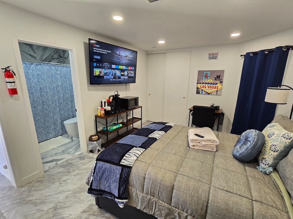Καλώς ήρθατε σε αυτό το άνετο στούντιο στο Λας Βέγκας!!!! Αυτό το στούντιο είναι ιδανικό για να χαλαρώσετε και να ξεκουραστείτε κατά τη διάρκεια τις διακοπές σας στην πόλη. Θα έχετε το δικό σας κλιματιστικό με λειτουργία ψύξης και θέρμανσης και τηλεόραση με Roku και Disney+ Απέχουμε μόλις 10 λεπτά από το Las Vegas Strip. Μπορείτε να φτάσετε στο αεροδρόμιο σε 8 λεπτά. Στρογγυλεμένο από εμπορικά κέντρα, αγορές, τράπεζες κ.λπ. Το στούντιο έχει ιδιωτική είσοδο, κουζίνα και μπάνιο. Μόνο η μπροστινή αυλή είναι ένας κοινόχρηστος χώρος όπου μπορείτε να δείτε άλλους επισκέπτες. Σίγουρα θα το λατρέψετε