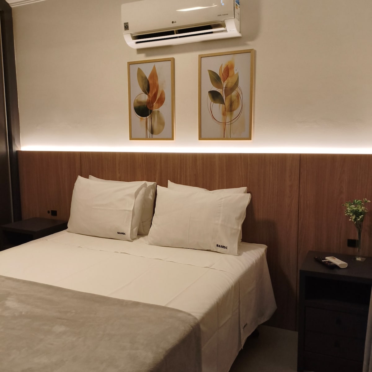 Sofisticado apartment studio located 800m from Vila Germânica Park - a event site such as Oktoberfest. Περιτριγυρισμένο από εστιατόρια, μπαρ και σούπερ μάρκετ. Όλα για την άνεσή σας: Smart TV 50" Samsung, κλιματιστικό, ντους αερίου, wifi ινών 240mb, πλήρης κουζίνα με ψυγείο Brastemp, φούρνο μικροκυμάτων, φούρνο, φούρνο, μπότα, καφετιέρα, καθαριστή νερού, πλυντήριο και στεγνωτήριο, ντουλάπα και φυσικά ένα φιλόξενο διπλό κρεβάτι με το καλύτερο στρώμα!