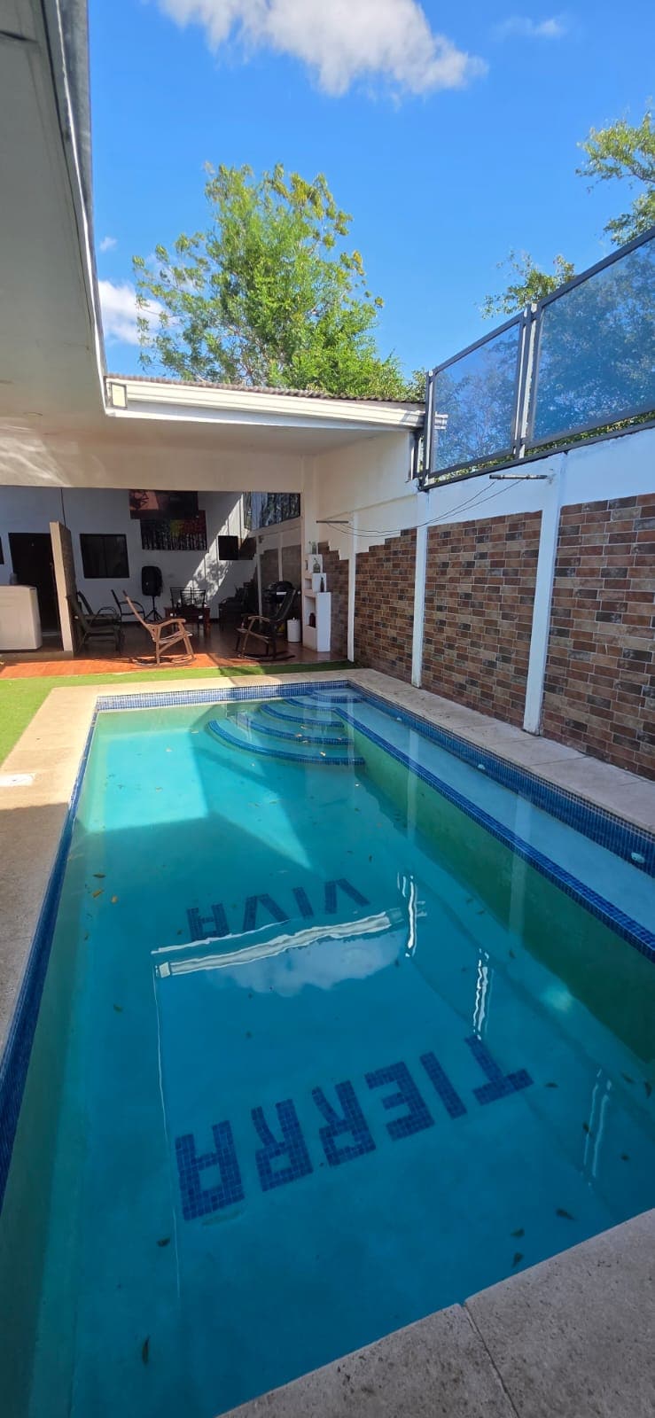 Tierra Viva es una casa amplia y acogedora diseñada para descansar, compartir y reconectar con la naturaleza. Estamos ubicados en Praderas de Cofradía un residencial tranquilo, alejado del bullicio de la ciudad rodeada de campos y areas verdes. La casa tiene capacidad para 14 personas, ideal para viajes familiares, reuniones con amistades, celebraciones o escapadas para reconectar. Nuestra ubicacion estratetica cerca del aeropuerto nos hace perfecta para viajeros que llegan a Managua.
