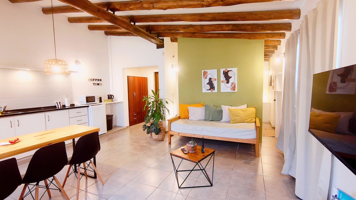 Απολαύστε τη ζεστασιά και τη γοητεία αυτού του άνετου, πλήρως εξοπλισμένου στούντιο, ανάμεσα σε αμπελώνες στην καρδιά του Chacras de Coria. Αυτή η παραδοσιακή γειτονιά, μόλις 15 λεπτά από την πόλη, διακρίνεται από τα τοπία της, την κεντρική εκκλησία και τα περίχωρά της γεμάτα από καφετέριες, επιχειρήσεις και γαστρονομία παγκόσμιας κλάσης. Ζήστε μια αυθεντική και γοητευτική εμπειρία στη γη του κρασιού. Επιλογή πρωινού με επιπλέον χρέωση. Η Pileta είναι διαθέσιμη από τον Νοέμβριο