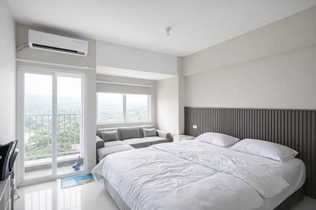Χαλαρώστε σε αυτό το ήσυχο μέρος για να μείνετε. Στούντιο με μπαλκόνι και θέα στο βουνό. παρέχονται πετσέτα μπάνιου και παροχές. Υπάρχουν παιδιά και πισίνα υπερχείλισης στον 7ο όροφο. Στρατηγική τοποθεσία: 4 χιλιόμετρα από το Aeon Mall Sentul και το IKEA 8 ΧΙΛΙΟΜΕΤΡΑ από την Ταμάν Μπούνταγια 10 χιλιόμετρα από το pancar gunung 2 λεπτά με τα πόδια από το γήπεδο προπόνησης Asiop Εγκαταστάσεις: Έξυπνη τηλεόραση Wifi (περιορισμένη ποσόστωση) Κλιματισμός Γραφείο εργασίας Σετ κουζίνας Θερμοσίφωνας Πόσιμο νερό Μικρό ψυγείο Επιβεβαιώστε την κράτηση τουλάχιστον 24 ώρες πριν από την άφιξη