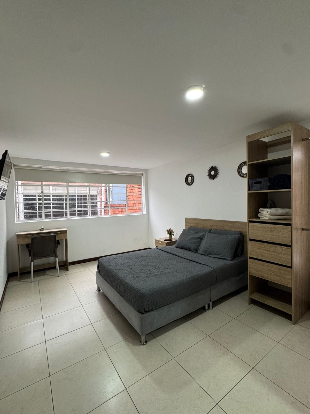 Hermoso apartastudio tranquilo y acogedor. Con una exelente ubicación. Cuenta con 1 habitación cama doble, Wifi, cocina, 1 baño privado con ducha de agua caliente y espacio de trabajo comodo. Ubicado a 10 minutos del aeropuerto, con fácil acceso a transporte publico, cercano a centros comerciales, restaurantes, parques y punto estrategico para salir de Bogotá.