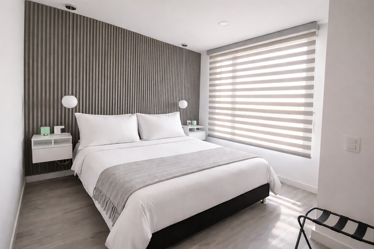 Ubicado en la zona más practica y conveniente de Bogotá, en pleno Chapinero. A solo unas cuadras del centro financiero, de la zona gastronómica y cultural y a pocos minutos del centro de la ciudad, disfrute de una experiencia elegante en un nuevo apartamento con todo lo necesario para tu comodidad, sea estadía de trabajo (Internet alta velocidad) o turismo y goza de excelentes vistas. Edificio con seguridad y magníficos amenities como salas de reuniones, gimnasio, piscina, sauna y parrilla.