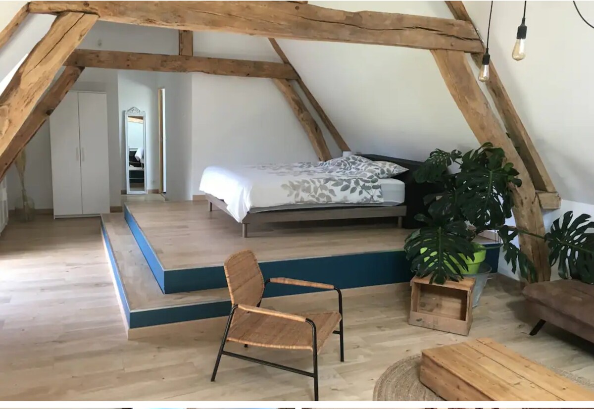 Το La Lanterne είναι ένα φωτεινό και γεμάτο φως εξοχικό τύπου σοφίτα (50 τ.μ.) που βρίσκεται στη Νορμανδία, σε έναν όμορφο χώρο ενός μεγάλου σπιτιού στις όχθες του Σηκουάνα στο Tournedos-sur-Seine (ένα ήσυχο χωριό τέσσερα χιλιόμετρα από το Le Vaudreuil/Val-de-Reuil). Το σπίτι έχει επιπλωθεί πλήρως και είναι πλήρως εξοπλισμένο. Δύο μεγάλα δωμάτια με ανοιχτή κουζίνα, υπνοδωμάτιο με διπλό κρεβάτι king size, καναπέ, γραφείο. Ιδιωτικό μπάνιο με ντους. Πολυτελής διακόσμηση. Γαλήνιο και μαγικό περιβάλλον κοντά στη φύση.