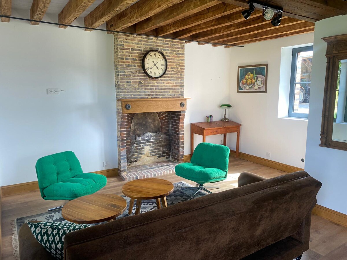 Άνετα, ζεστά, εξαιρετικά ήσυχα και γοητευτικά δύο υπνοδωμάτια, 6 άτομα, 125 τ.μ. - πλήρως ανακαινισμένο το 2014 - παραδοσιακό νορμανδικό αρχαίο εξοχικό "longère", χωρίς άμεσους γείτονες, 1 εκτάριο ιδιωτικού κήπου και πρόσβαση σε 10 εκτάρια οικολογικού καταφυγίου, φωλιασμένο σε λουλούδια και πράσινα λιβάδια. Πρόσβαση για άτομα με ειδικές ανάγκες, καμινάδα, φιλικό προς παιδιά και σκύς.