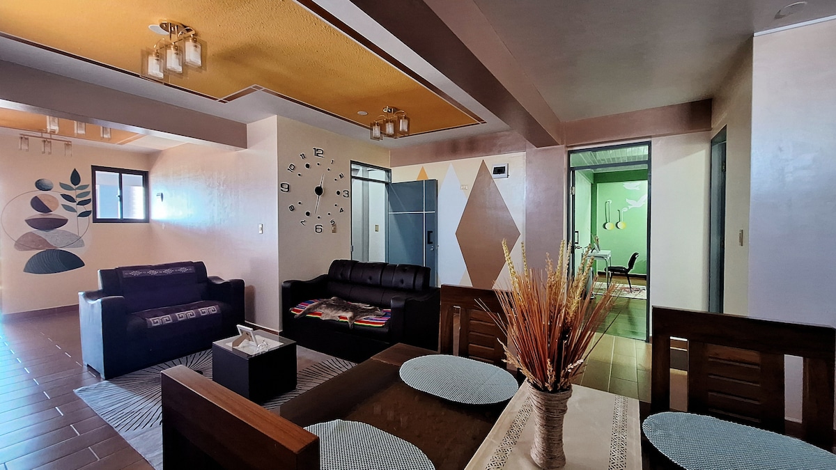 Όμορφο και κεντρικό - Το τέλειο καταφύγιο για να επισκεφτείτε το Uyuni. Απολαύστε την άνεση 2 ευρύχωρων δωματίων με κρεβάτια queen size, 2 πλήρη μπάνια και πλήρως εξοπλισμένη κουζίνα, ιδανική θέρμανση για κρύες νύχτες στο οροπέδιο, χώρο εργασίας με βέλτιστο WiFi για ψηφιακούς ταξιδιώτες, πολυτελή τραπεζαρία, άνετο σαλόνι με τηλεόραση 55" που θα κάνει τη στιγμή μοναδική. Προνομιακή τοποθεσία για να εξερευνήσετε την πόλη, το Salar, τις λιμνοθάλασσες, τα ηφαίστεια και άλλα αξιοθέατα. Η περιπέτειά σας στη Βολιβία ξεκινά εδώ!