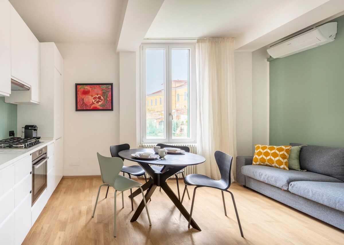 Φωτεινό και προσεγμένο στούντιο, με απλές γραμμές και παστέλ αποχρώσεις. Το δυνατό του σημείο είναι η τοποθεσία του: στο κέντρο του κέντρου: Το διαμέρισμα βρίσκεται σε μία από τις παλαιότερες και πιο συναρπαστικές περιοχές της πόλης, στο κέντρο της πιο διάσημης αγοράς τροφίμων στη Μπολόνια, που περιβάλλεται από πολλά μικρά μπαρ και εστιατόρια. Είναι μια περιοχή γεμάτη "ιταλική ζωή" και η αγορά ανοίγει νωρίς το πρωί, οπότε μερικές φορές μπορεί να υπάρχει θόρυβος, όπως σε όλο το ιστορικό κέντρο της Μπολόνια.