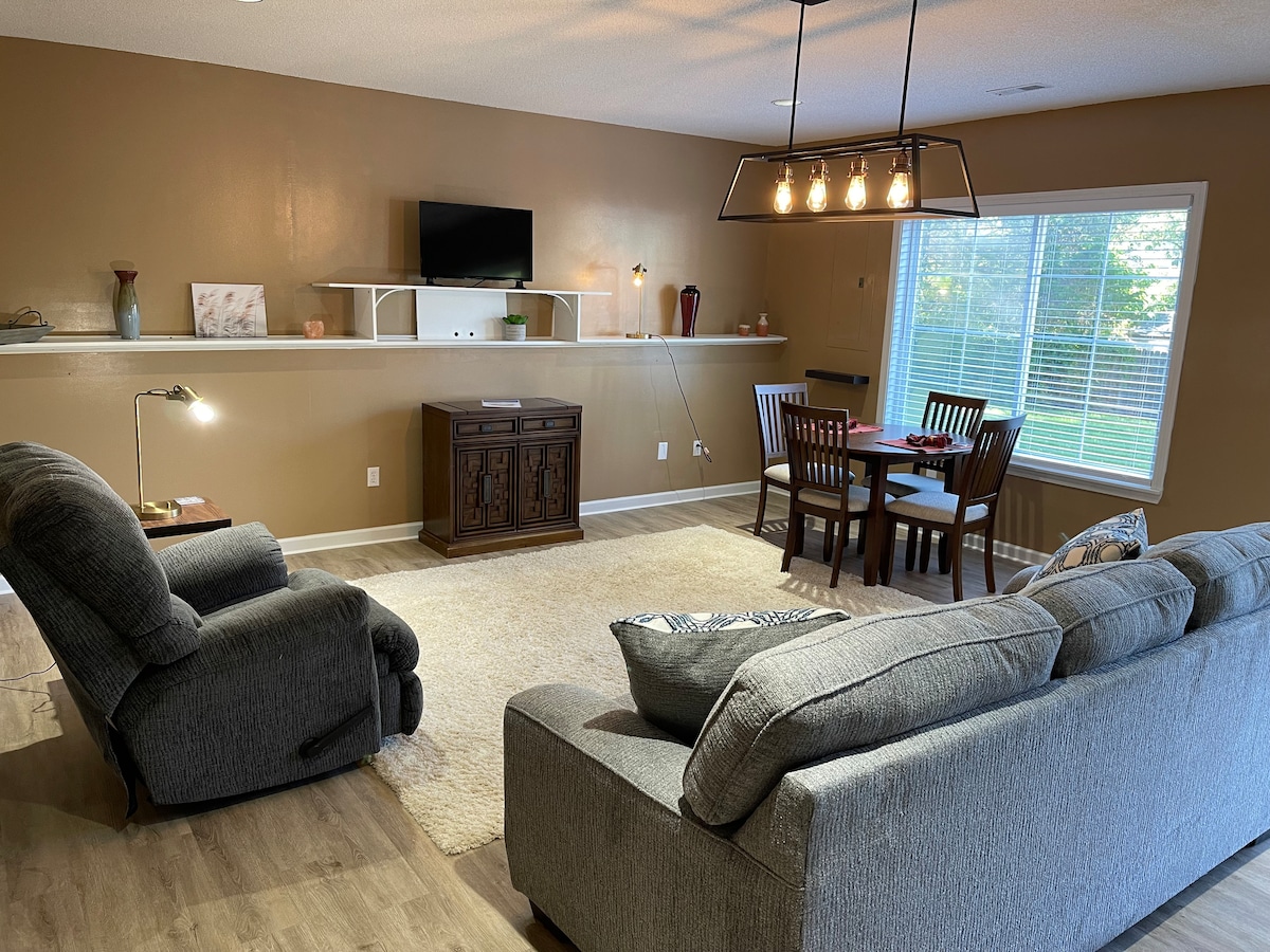 Ολόκληρο το κάτω επίπεδο του σπιτιού με 2 όμορφα μεγάλα υπνοδωμάτια, ευρύχωρο μπάνιο με άφθονο ζεστό νερό στο ντους! Όμορφο τζάκι σε πανέμορφο σαλόνι με τραπεζαρία. Η μικρή κουζίνα περιλαμβάνει ψυγείο, φούρνο τοστ, φούρνο μικροκυμάτων και καφετιέρα Keurig. Αυτό το διαμέρισμα στο κάτω επίπεδο είναι φωτεινό και ευάερο με μεγάλα παράθυρα σε κάθε δωμάτιο! Τα υπνοδωμάτια περιλαμβάνουν τηλεοράσεις μαζί με τηλεόραση μεγάλης οθόνης στο σαλόνι. Ιδιωτικό υπαίθριο καθιστικό με τζάκι για να απολαύσετε τα βράδια σας!