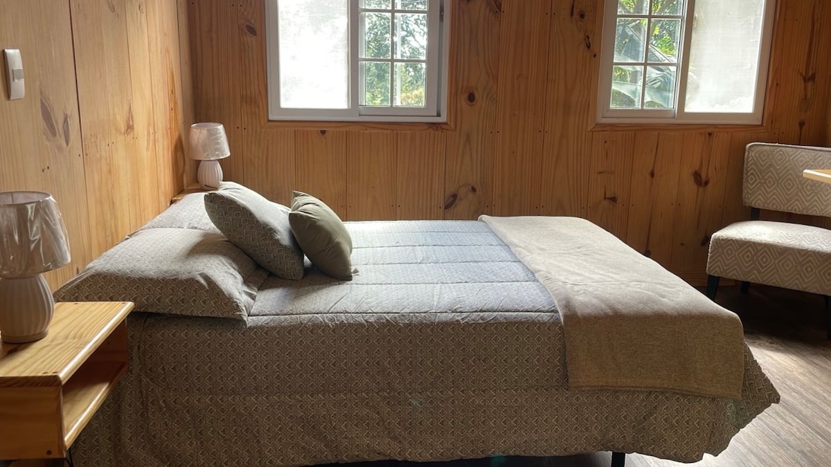 Λάβετε υπόψη ότι το ξυλόσπιτο βρίσκεται σε βολική τοποθεσία κοντά στον κεντρικό δρόμο, γεγονός που μπορεί περιστασιακά να προκαλέσει θόρυβο στον δρόμο. Ρουστίκ ξυλόσπιτο Μικρό ρουστίκ ξυλόσπιτο, ιδανικό για άτομα ή ομάδες δύο ατόμων που αναζητούν έναν χώρο διαμονής ενώ εξερευνούν το Boquete. Η ιδιοκτησία διαθέτει χώρο στάθμευσης και εύκολη πρόσβαση στο κέντρο της πόλης, είτε με τα πόδια είτε με το αυτοκίνητο. Βρίσκεται σε βολική τοποθεσία κοντά σε ένα μεγάλο σούπερ μάρκετ και είναι εύκολα προσβάσιμο με λεωφορείο. Βρίσκεται στον δεύτερο όροφο, έχει μια εντελώς ιδιωτική είσοδο.