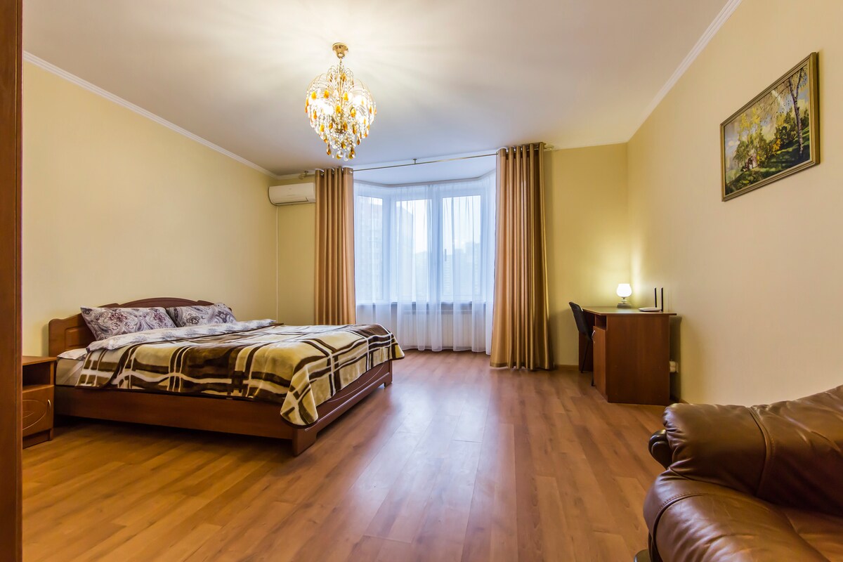 Το διαμέρισμα είναι μοντέρνα επισκευασμένο. Βρίσκεται στην καρδιά της πόλης (σε ένα σπίτι απέναντι από το κρατικό φορολογικό πανεπιστήμιο). Τα παράθυρα προσφέρουν υπέροχη θέα στην πόλη. Το διαμέρισμα είναι πολύ άνετο. Υπάρχουν όλα τα απαραίτητα έπιπλα και συσκευές. Ο κλιματισμός είναι εγκατεστημένος. Κοντά στο σπίτι υπάρχει στάση δημόσιας συγκοινωνίας γύρω από την πόλη και προς το Κίεβο (σταθμός μετρό Akademmistechko) , Tsentralny Park, Neznayki Park κ.λπ. Το κόστος ενοικίασης για μία διανυκτέρευση είναι 1500 UAH Όταν διαμένουν 3 ή περισσότερα άτομα, η τιμή ενοικίασης αυξάνεται κατά 300 UAH.