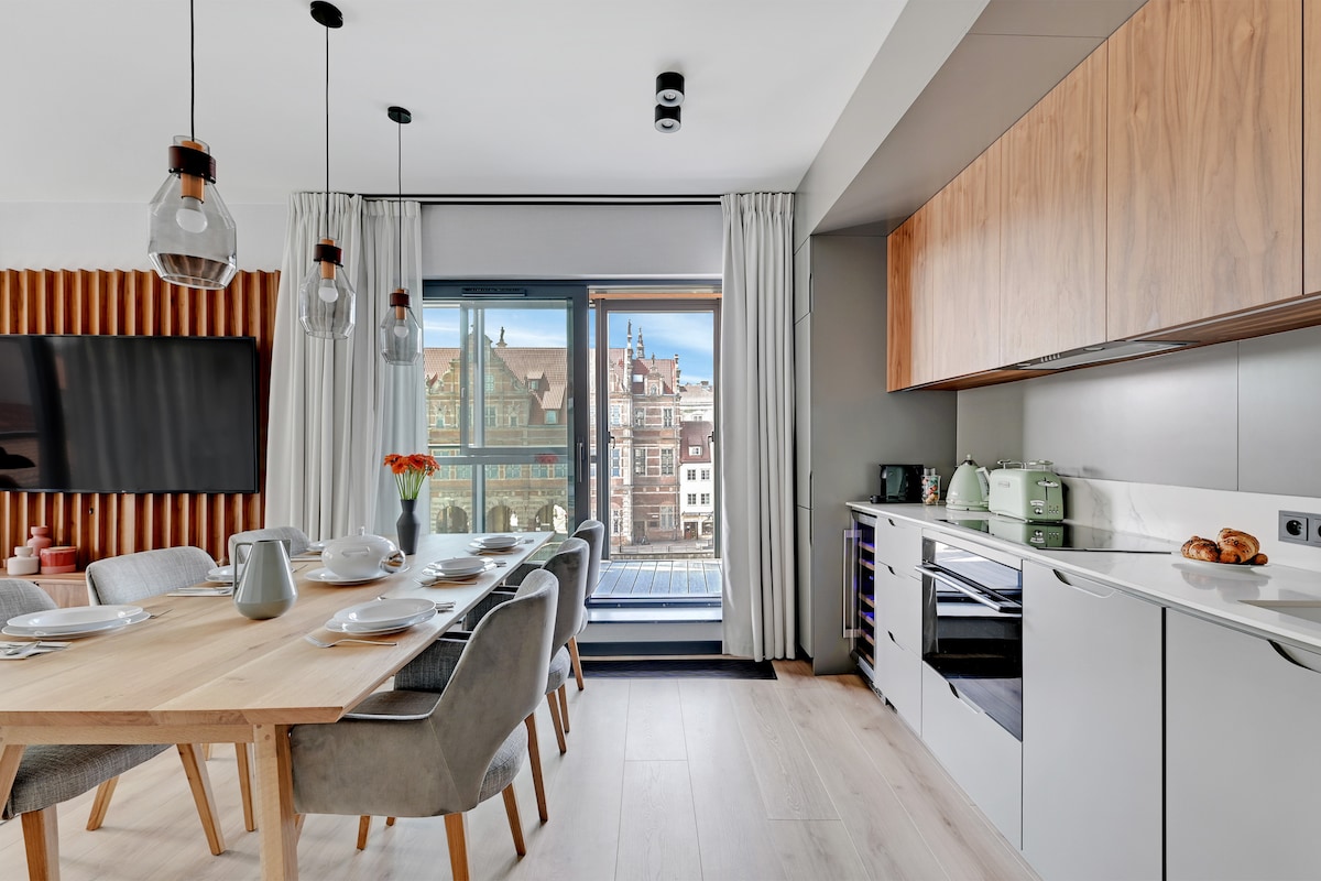 Μοναδικό διαμέρισμα με την καλύτερη θέα στην Παλιά Πόλη του Γκντανσκ. Το διαμέρισμα διαθέτει ευρύχωρη, επιπλωμένη βεράντα με θέα σε ιστορικά αρχοντικά, επαγγελματική κάρτα του Gdansk - Crane, του ποταμού Motława και της Πράσινης Πύλης. Το διαμέρισμα βρίσκεται στην επένδυση Deo Plaza, η οποία δίνει στους επισκέπτες πρόσβαση στον χώρο ΣΠΑ, στην πισίνα, (επί πληρωμή επιπλέον στον χώρο). Ένα διαμέρισμα ιδανικό για επισκέπτες που εκτιμούν την πολυτέλεια, την άνεση και την ξεκούραση στο υψηλότερο επίπεδο.