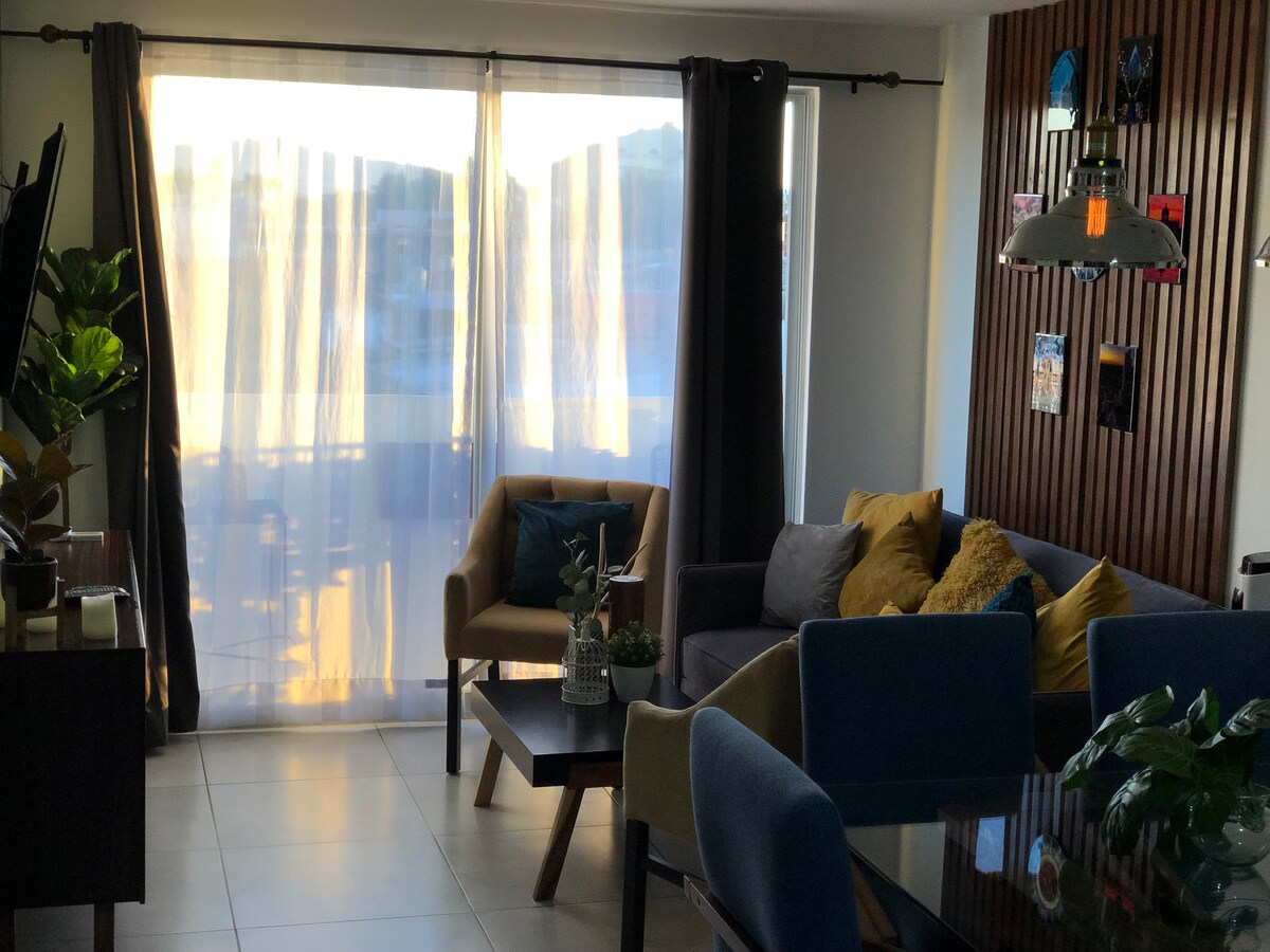 Πολυτελές επιπλωμένο διαμέρισμα. 1 υπνοδωμάτιο, χώρος πλυντηρίου, εξοπλισμένη κουζίνα, βεράντα λίγα μέτρα από την πισίνα, 1 θέση στάθμευσης, άμεση πρόσβαση στην εμπορική πλατεία (Real Center) με εστιατόρια, μπαρ, Cinépolis, Starbucks, πλυντήριο, χαρτικά, Sams. Πρόσβαση στο γυμναστήριο, την πισίνα, το δωμάτιο παιχνιδιών και την ασφάλεια 24 ώρες το 24ωρο, 7 ημέρες την εβδομάδα Μπορούμε να εκδώσουμε τιμολόγιο, αν χρειαστεί.