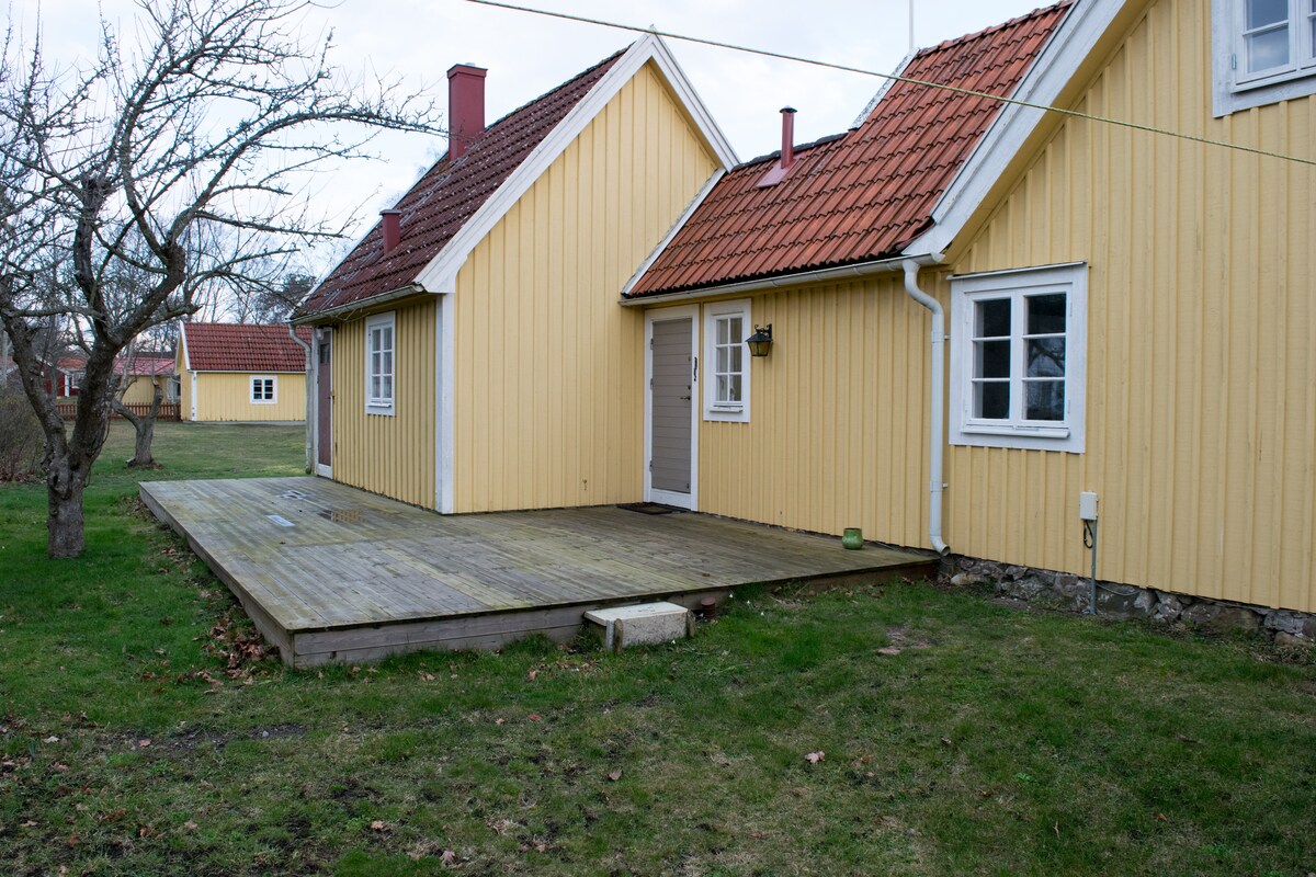 Ξενώνας στο Rinkabyholm, 8 χιλιόμετρα από το κέντρο της πόλης Kalmar. Το εξοχικό βρίσκεται στον κήπο μας. Είναι 2 δωμάτια και μια κουζίνα. Ένα υπνοδωμάτιο με 2 μονά κρεβάτια. Σαλόνι με καναπέ-κρεβάτι. Μπάνιο με ντους και πλυντήριο ρούχων. Αίθριο. Δωρεάν χώρος στάθμευσης. Ποδηλατόδρομος στα σύνορα της ιδιοκτησίας που οδηγεί μέχρι το κέντρο της πόλης Kalmar. Υπάρχουν παπλώματα και μαξιλάρια.