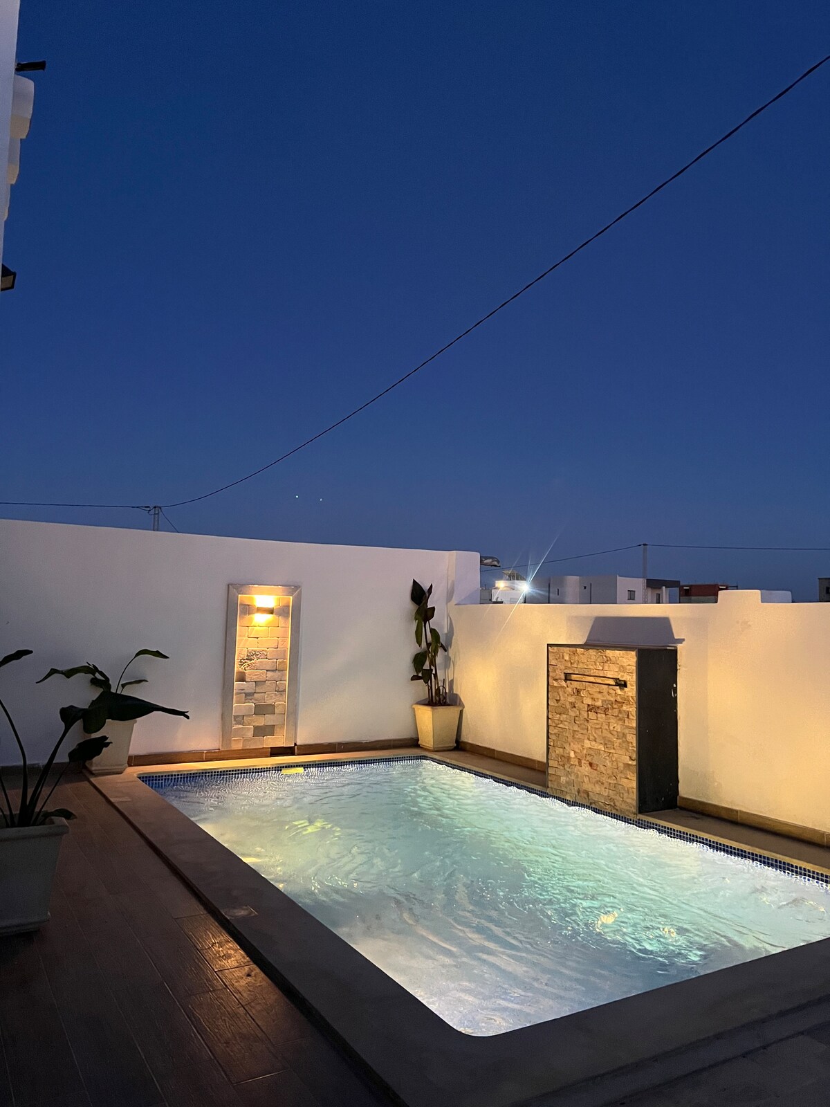 Ευρύχωρη βίλα με ιδιωτική πισίνα – 5 λεπτά από το Yasmine Hammamet Καλώς ήρθατε στο όμορφο σπίτι μας μόλις 5 λεπτά από το Yasmine Hammamet! Απολαύστε μια άνετη και χαλαρωτική διαμονή σε αυτήν την ευρύχωρη βίλα, ιδανική για οικογένειες ή παρέες φίλων. Εξαιρετική τοποθεσία: Σε μικρή απόσταση με το αυτοκίνητο από τις παραλίες, τα εστιατόρια, τα καφέ και τα αξιοθέατα του Yasmine Hammamet. Κάντε κράτηση τώρα για αξέχαστες διακοπές κάτω από τον ήλιο της Τυνησίας