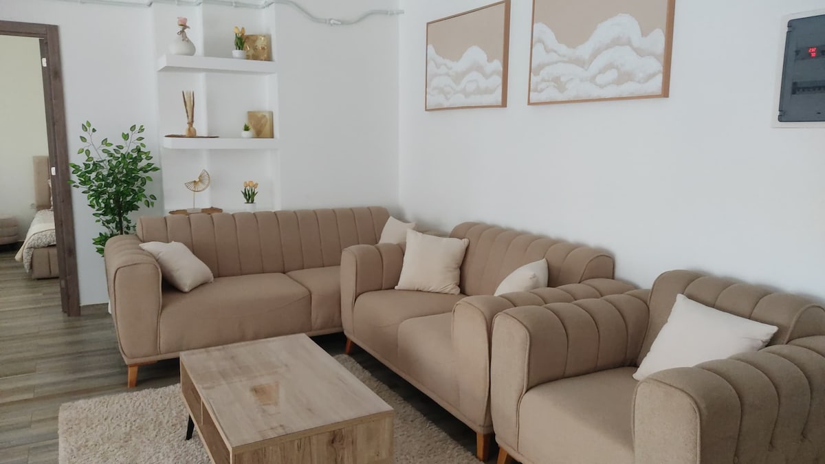 🏷 Μείνετε στον 1ο όροφο σε ένα άνετο και γοητευτικό νέο διαμέρισμα, 2 υπνοδωμάτια για έως και 6 άτομα. Δυναμική γειτονιά κοντά σε όλες τις παροχές και την ψυχαγωγία. ☺️ Ιδιωτική 🔑 κατοικία και επίβλεψη από αντιπρόσωπο 24 ώρες το 24-ωρο. 🚘 Δυνατότητα στάθμευσης. 📍Σε άμεση γειτνίαση: Όλα τα καταστήματα που έχουν ανάγκη 👍 🚈 Στάση τραμ 150 μ. 🌊 🏖 Παραλία 800 μ. ✈️ Διεθνές Αεροδρόμιο 15 λεπτά 🎡🛝 Αναψυχή, υδάτινα πάρκα... 5 λεπτά μακριά 🏬 Εμπορικά κέντρα 👌 Υπέροχο τζαμί, βόλτες, κέντρο του Αλγερίου κ.λπ....