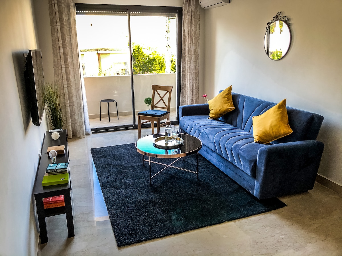 In a very calm & 24h secured new residence, ideally located in Casablanca, you will find all needed comfort & amenities with all deserved services & assistance. Only 3 min to main roads & highway (Marrakech, Rabat & Tangier ...), 5 Min to Casa nearshore business center, 5 Min to main super Markets, 20 Min to city center & only 30 min to airport. Private Parking, Balcony, WIFI, FHD international TV, Netflix, water, cheese & Fruits selection on arrival in addtion to any assistance upon request.