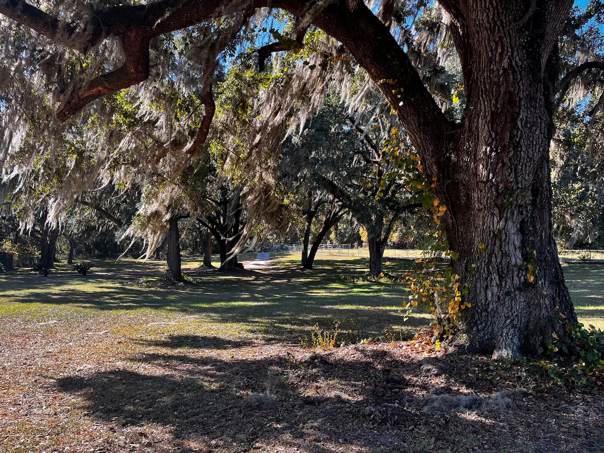 Η φύση στα καλύτερά της, γαλήνια ατμόσφαιρα. Μπορείτε να καθίσετε στη μπροστινή βεράντα και να ακούσετε τις καμπάνες της εκκλησίας. Φέρτε τα άλογά σας για μια μοναδική εμπειρία ιππασίας. Καταλύματα πρώτης κατηγορίας για τα άλογά σας. Αποδράστε με πιο ζεστό καιρό και απολαύστε την ομορφιά της Φλόριντα. Αυτό το αγρόκτημα που λειτουργεί έχει πολλά να προσφέρει. Υπάρχουν 250 στρέμματα δασωμένων μονοπατιών για να ιππεύσετε τα άλογά σας. Βρισκόμαστε σε κεντρική τοποθεσία σε σχέση με τα τοπικά αξιοθέατα. Το παγκόσμιο κέντρο ιππασίας απέχει λιγότερο από 2 ώρες, το Jacksonville Beach απέχει μία ώρα. 2 πλήρεις χώροι για τροχόσπιτα.