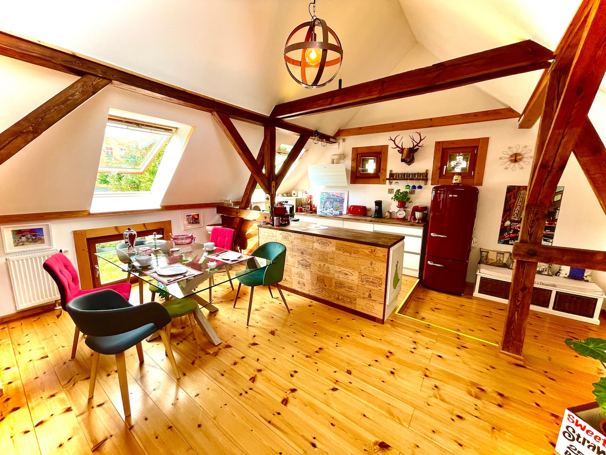 Διώροφη σοφίτα με τούβλα και δοκάρια (30 τ.μ.) κοντά στην Antonplatz