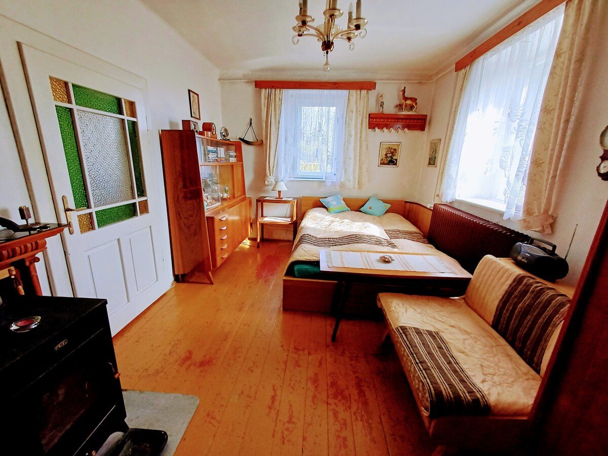 Το σπίτι μας από το 1895 βρίσκεται στην καρδιά των Όρεων Jeseníky, στο Vrbno pod Praděděm, με υπέροχη θέα στα γύρω βουνά. Το σπίτι περιβάλλεται από την όμορφη φύση των Jeseníky και λίγο πιο πέρα ξεκινά το δάσος. Η ηρεμία παρέχεται από τον μεγάλο κήπο, από τον οποίο υπάρχει μια όμορφη θέα είτε από τη βεράντα είτε από τη λίμνη στο κάτω μέρος. Υπάρχουν αμέτρητες επιλογές για περπάτημα, πεζοπορία ή ποδηλασία. Ιδανικό είναι να τα συνδυάσετε με ξεκούραση στη σκιά μιας ανθισμένης μηλιάς στον κήπο.
