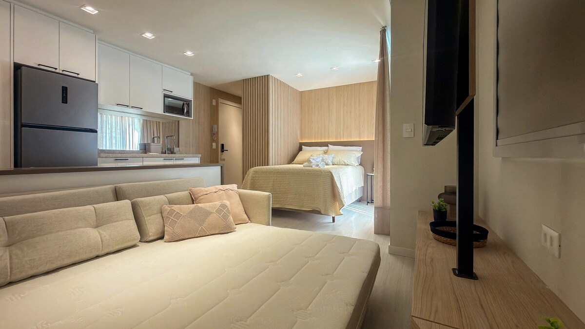 Χαλαρώστε, ξεκουραστείτε και απολαύστε τον ήλιο σε ένα από τα πιο όμορφα μέρη της Βραζιλίας και σε μία από τις πιο πολυτελείς σουίτες στο Jurerê Internacional. Από το μπαλκόνι, μπορείτε να απολαύσετε το αεράκι και τη θέα του ηλιοβασιλέματος ή να ξυπνήσετε και να αποφασίσετε αν είναι μια μέρα για παραλία ή μια μέρα για θερμαινόμενη πισίνα. Ένα διαμέρισμα με την ιδανική τοποθεσία για εργένηδες ή ζευγάρια που απολαμβάνουν τη ζωντανή ατμόσφαιρα των μπαρ και εστιατορίων του Jurerê Internacional, όλα σε κοντινή απόσταση.